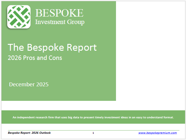 Our Bespoke Report – 2026 Pros and Cons is now available for Bespoke subscribers. This report covers everything you need to know about the set-up for financial markets and the economy heading into 2026. If there’s ever a “must-read” Bespoke report, this is it!