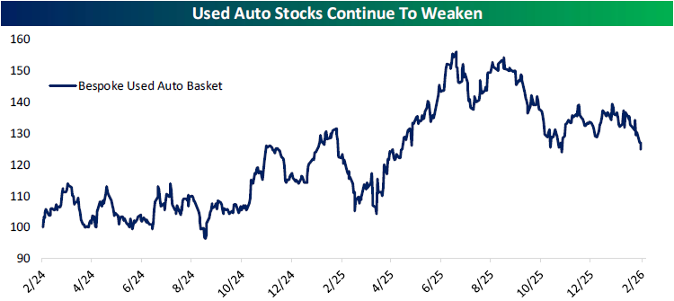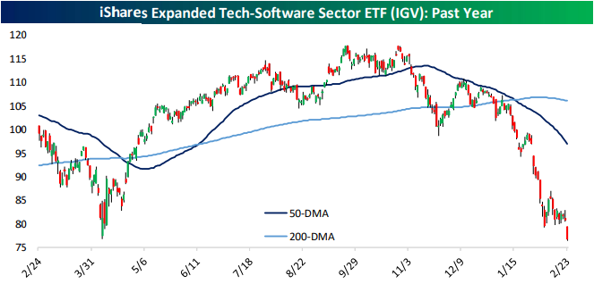 Looking for deeper insight into markets? In tonight’s Closer sent to Bespoke Institutional clients, we kick off with a review of the latest Fedspeak in addition to all the further pain in software names (pages 1 – 3). Next up, we show where some outperformers were today in addition to an update on regional Fed indices (page 4). After that, we provide a review of the latest positioning data (pages 5 & 6).