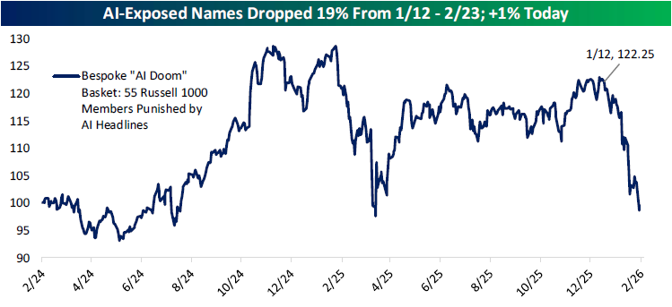 Looking for deeper insight into markets? In tonight’s Closer sent to Bespoke Institutional clients, we begin with a recap of the AI stocks today including those tied with OpenAI (page 1). Next up, we give a rundown of the latest earnings reports (page 2) followed by a look into the performance of Latin American stocks (page 3). We then finish with a review of recent job postings data from Indeed (pages 4 and 5).
