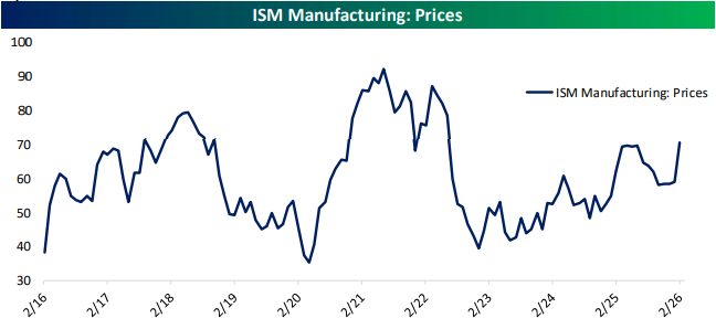 - ISM Manufacturing data indicated continued robust activity in the month of February.