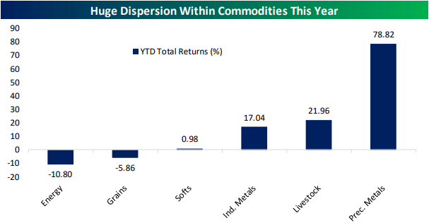 Looking for deeper insight into markets? In tonight’s Closer sent to Bespoke Institutional clients, as the year winds down to a close, we provide a recap of commodity performance in 2025 including looks at broad commodity indices (page 1), the dispersion between various commodities (page 2), and finally, energy, precious metal, and cattle prices (page 3). We round out tonight’s note with an update on Treasury allotment data (page 4).