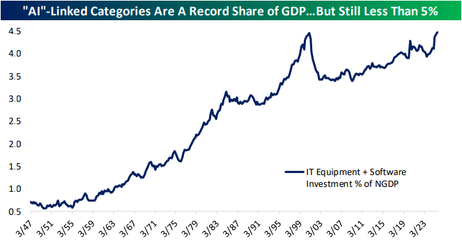 Looking for deeper insight into markets? In tonight’s Closer sent to Bespoke Institutional clients, we start out with an in depth look at the latest GDP figures including a dive into AI impacts on the number (pages 1-2) in addition to an update on some of the latest employment metrics according to ADP (page 3). We then turn over to an update to our Five Fed Manufacturing Composite (page 4) before closing out with a rundown of the latest durable goods figures (page 5).