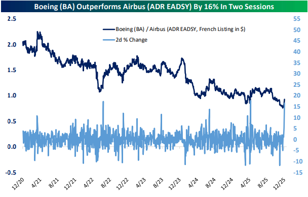 Looking for deeper insight into markets? In tonight’s Closer sent to Bespoke Institutional clients, we start with a look into some valuation metrics for the crypto treasury company Strategy (MSTR) (page 1) followed by a look into the historic strength of Boeing (BA) relative to Airbus (EADSY) (page 2). Next, we pivot into auto sales (page 3) before closing out with a dive into a handful of baskets (page 4) in addition to the Logistics Managers Index and related stocks (pages 5 and 6).