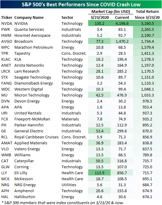 The 30 stocks shown below had a collective market cap of $735 billion at the time of the COVID low. Today, their combined market cap has eclipsed $10 trillion!