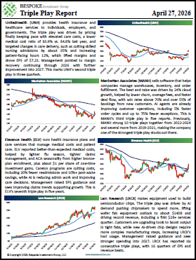 Bespoke’s Triple Play Report covers what each company does, what this quarter’s results say about their growth outlooks, and their histories of delivering triple plays. Bespoke’s Triple Play Report is available at the Bespoke Institutional level only. You can sign up for Bespoke Institutional now and receive a 14-day trial to read today’s Triple Play Report. To sign up, choose either the monthly or annual checkout link below: