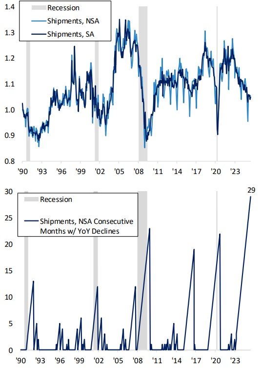 In our second scenario, we assume current forward EPS are valued at the same multiple as the post-COVID valuation peak (23.41x versus 22.17x current). That implies a 6594 S&P 500 price. Given the market currently trades around 6240, we can back out how each scenario is priced in probability terms. As shown below, current market prices imply a 94% chance of no enactment for the current wave of tariffs. Of course, we are making a number of assumptions in this analysis, but we think they’re defensible. The key takeaway here is that the market is pricing very low odds of full enactment for the current wave of tariffs. At the very least, that creates asymmetry to the downside as far as payoff goes. That is one reason we advocated a relatively cheap hedging strategy in The Closer last night (link).