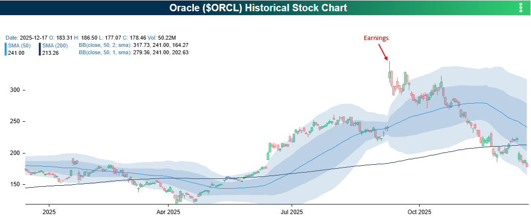 It started with Oracle (ORCL) in September. After reporting earnings after the close on 9/9, the stock traded up an astonishing 36%. Since then, all those gains and more have evaporated as the stock has been essentially cut in half.