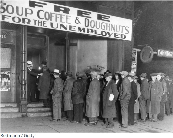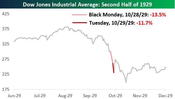 The next day, Black Tuesday, only made matters worse as the Dow fell an additional 12%. In just two trading days, nearly a quarter of the market’s value evaporated.