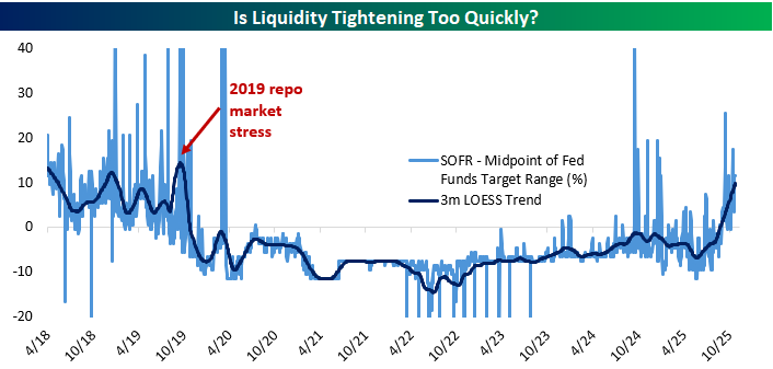 The following is an in-depth analysis of tightening liquidity in the repo and Fed Funds markets that was included in our post-market macro note, The Closer, on 10/27/25. Start a trial here to receive our Closer in your inbox daily for the next two weeks!