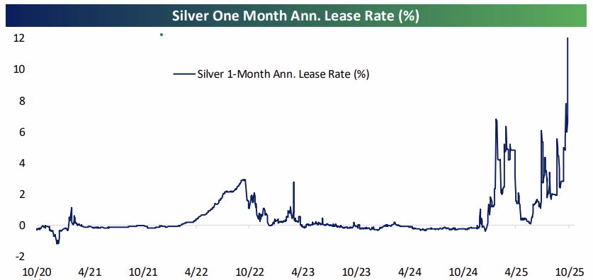 With not enough silver to go around, lease rates on silver in vaults have soared; borrowing silver to deliver on futures contracts and other derivatives is still possible, it’s just a lot more expensive to accomplish than has been the case in recent years as shown in the chart below.