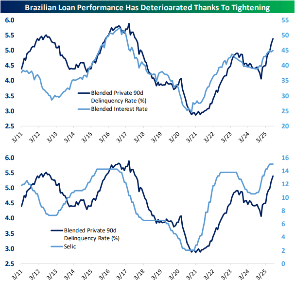 Looking for deeper insight into markets? In tonight’s Closer sent to Bespoke Institutional clients, we begin with a check up on the health of leveraged loan activity (page 1) followed by an update on regional Fed manufacturing indices (page 2). We then review the performance of some of today’s top performing stocks, namely those associated with retail risk appetite (page 3) in addition to how far AI stocks are trading relative to price targets (page 4). We finish with an update on some Brazilian data releases (pages 5 and 6).