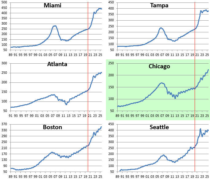 Based on the latest Case Shiller data, the dynamic has flipped: instead of “Sun Belt boom, Rust Belt lag,” the post-COVID housing cycle now features a Midwest resilience vs. coastal fatigue narrative.