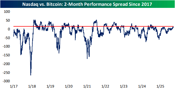 Looking for deeper insight into markets? In tonight’s Closer sent to Bespoke Institutional clients, we lead off with some commentary regarding the market’s current level of frothiness (page 1). We follow up with a review of the performance of stocks relative to crypto (page 2) before switching into some commentary surrounding a busy day of fedspeak (pages 3 and 4). We then finish with a dive into the latest positioning data (pages 5 and 6).