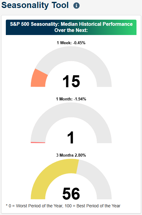 If the rally is to continue in the short term, the market will also need to do it without seasonality working in its favor. As shown in the Seasonality tool on our website, the S&P 500’s median performance over the next week based on the last ten years of data has been a decline of 0.45% which ranks in the 15th percentile of all one-week readings throughout the year. The median one-month performance has been a decline of 1.94% which is among the worst one-month periods of the year! As bad as that is, the median three-month performance is positive at 2.8% which ranks in the 56th percentile of all rolling three-month periods. Historically, the last three months of the year have been positive, but we still have to get through September first!