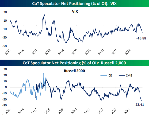 Looking for deeper insight into markets? In tonight’s Closer sent to Bespoke Institutional clients, we start with a look into credit spreads (pages 1 and 2) and how rates volatility has shaped up (page 3). We finish with an update on positioning (page 4).