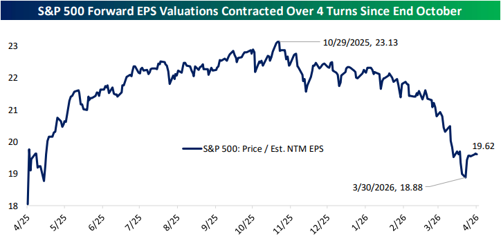 • US equity market valuations have turned significantly lower since peaking in late October of last year.